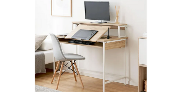 しかし、こちらのデスクでは角度が固定されている部分と調整可能な部分に分かれているため、角度をつけると物がずり落ちてきてしまうという不安も解決できるのがメリットです。