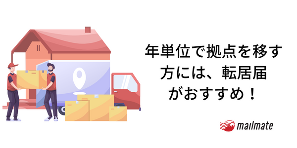 転居届は、季節ごとに拠点を移す方や年単位で移動している方におすすめの方法です。
